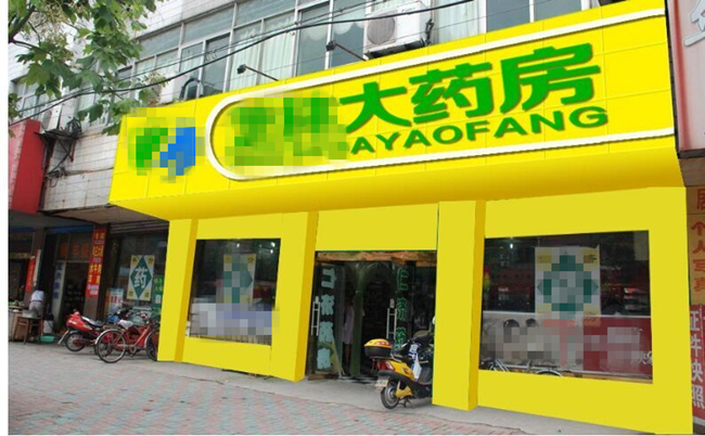 藥店屬于一個(gè)相對(duì)嚴(yán)肅的場(chǎng)所,門頭過于鮮艷不符合醫(yī)藥產(chǎn)品本身的形象,會(huì)給顧客一種十分不專業(yè)的感覺。并且這種明亮鮮艷的顏色對(duì)視覺的沖擊太強(qiáng)烈,大面積布置容易引起顧客的不適。