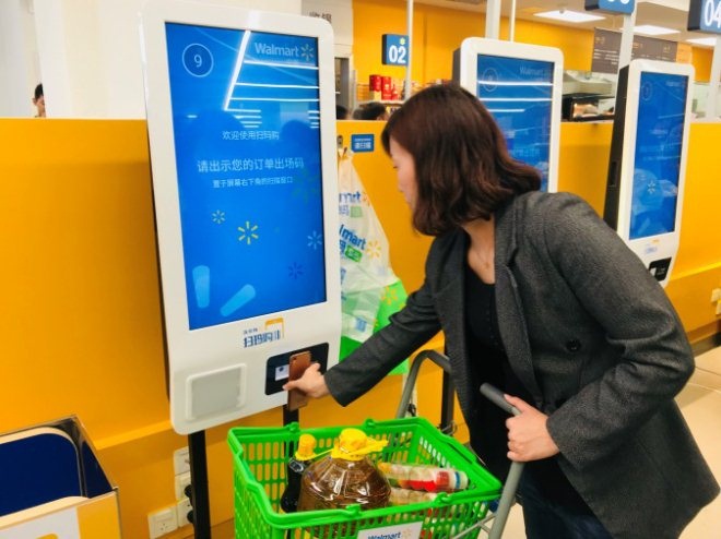 近日,沃爾瑪在深圳開(kāi)出首家智能門(mén)店“惠選”超市?;葸x超市標(biāo)識(shí)設(shè)計(jì)沿用沃爾瑪藍(lán)色,主色調(diào)綠色代表新鮮,輔助色橙色代表便捷。