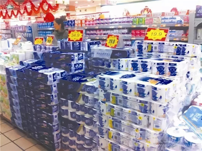 層疊堆積陳列法:像圖中的衛(wèi)生紙等大型生活日用品,擁有穩(wěn)定的結(jié)構(gòu),就可以直接堆積陳列在超市中央,讓它們看上去更加實(shí)惠便宜。