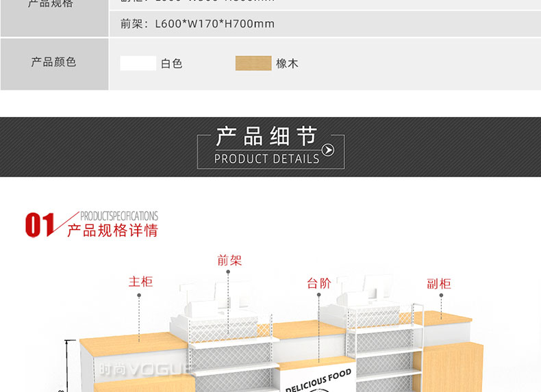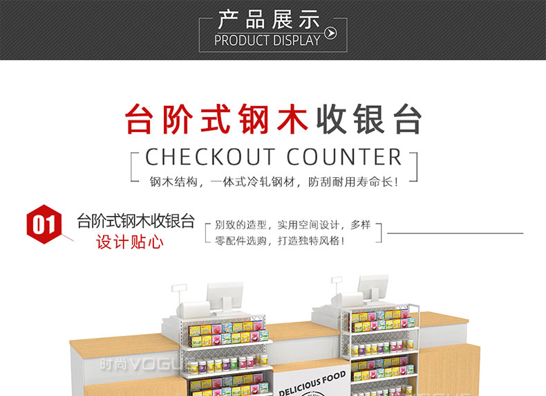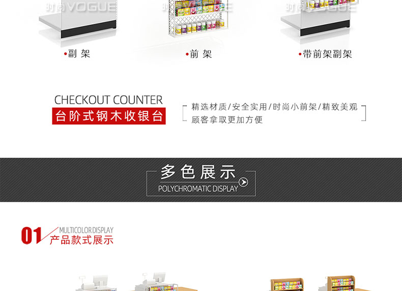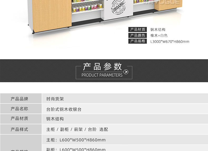 - 產(chǎn)品描述:這是時(shí)尚貨架針對母嬰店收銀區(qū)陳列最新推出的一款組合式收銀臺(tái)。