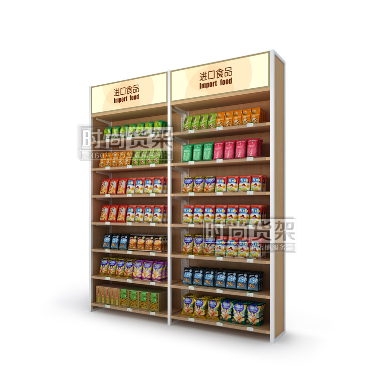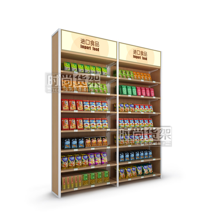 【產(chǎn)品名稱】全家便利店食品貨架/高檔進(jìn)口食品展示架/木背板零食架