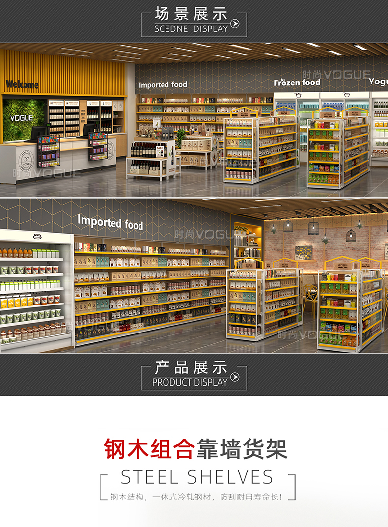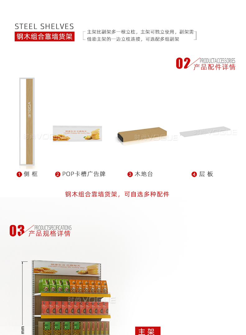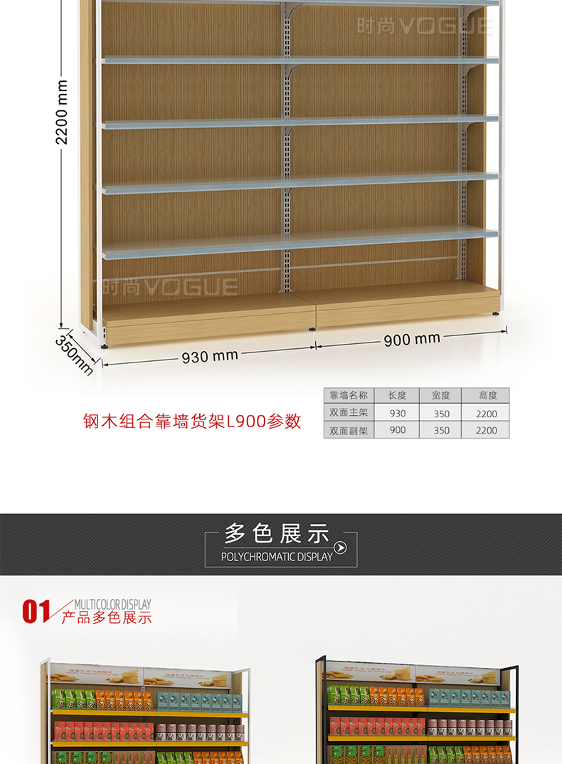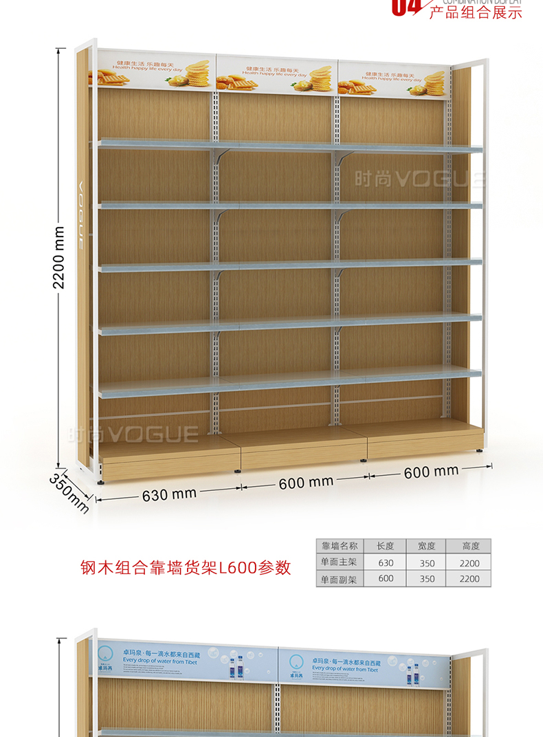 便利店貨架_木背板半木側(cè)框帶地臺