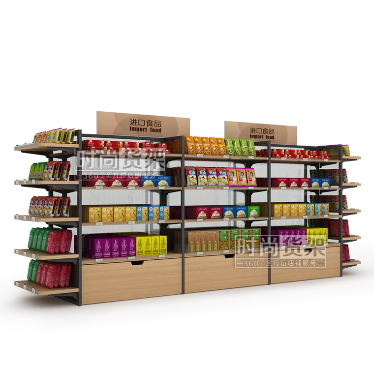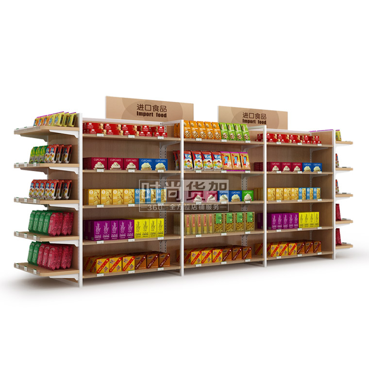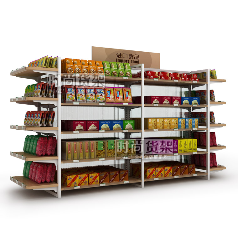 便利店貨架_進(jìn)口食品區(qū) (雙面木背板)