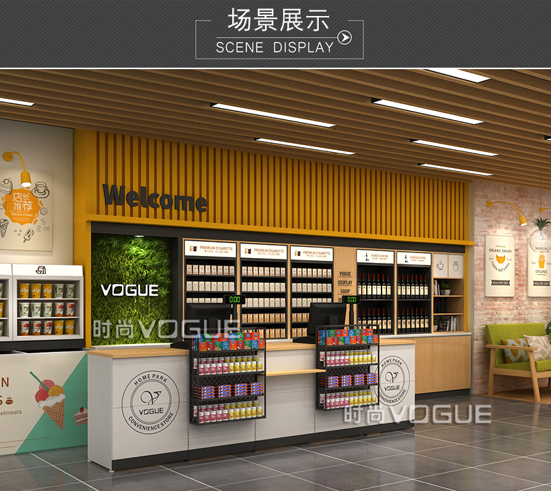 本款便利店收銀臺是時尚貨架為連鎖便利店設(shè)計生產(chǎn)的一款多功能組合式便利店收銀臺,如需了解更多小型便利店收銀臺,請咨詢客服人員!