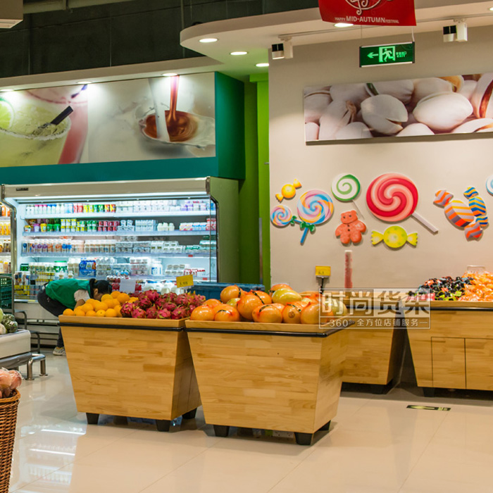 超市貨架_實(shí)木水果促銷柜