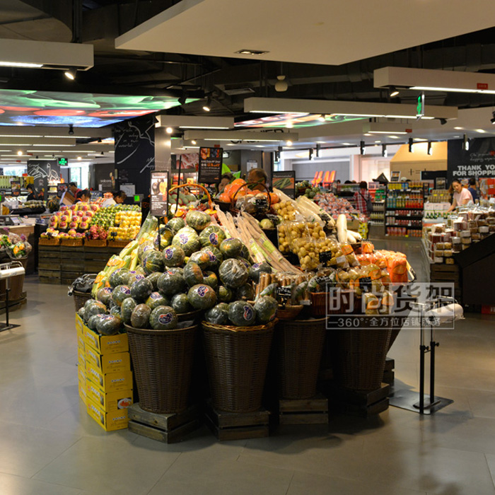 【產(chǎn)品名稱】超市果蔬促銷籃/超市生鮮堆頭/方形藤框果蔬促銷臺