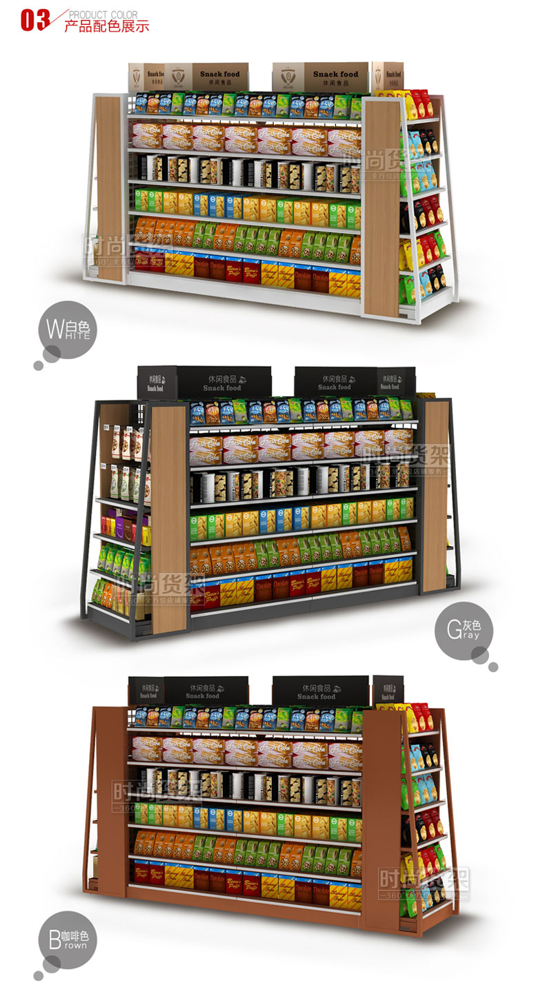 - 產(chǎn)品描述:此款貨架為超市貨架廠家時(shí)尚貨架專為超市食品區(qū)域打造,整體框架由優(yōu)質(zhì)冷軋鋼材精制而成,承重性強(qiáng)。